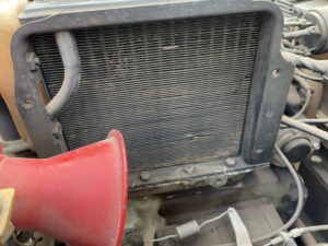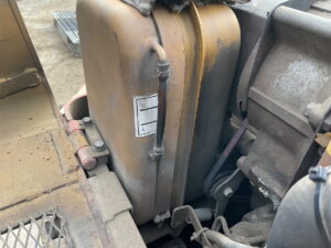 この筋のあるのはラディエターっぽいんだが、ここファンがついてたんじゃないかなー、ねじあるんだけど、ついてなかったんよ。いいのかな、これ。あと、黄色いタンクは作動油って書いてあるんやが油圧だよね?これなんでもいいんかな、とか、一応覗くと入っているのはわかってる。