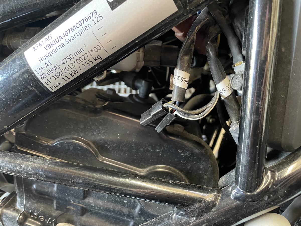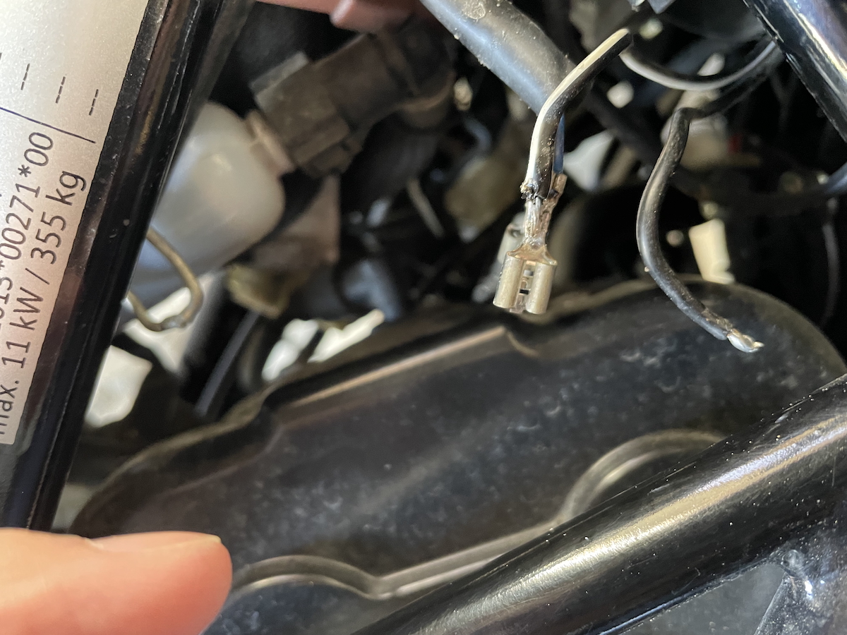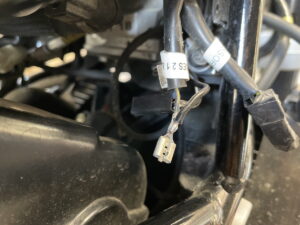 長い線を巻き巻きにしてエンジン上でまとめてありました。それでアクセサリーコネクタにくっついているのですが。。。