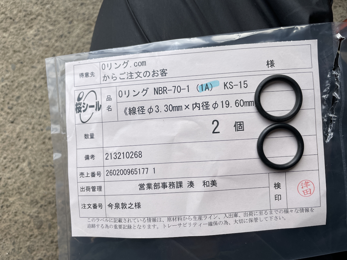 いくつか無駄になるが、4種類発注してKS15(φ3.30x内径19.6mm)がドンピシャじゃないかと思ってた。
