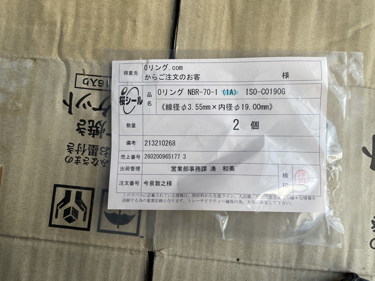 しかし、実際にピストンに入れてみると、なんだかスカスカしてこれじゃない気がする。上の写真でもわかるように(わからんか)なんかちょっと小さくないか?、そこで、ISO-C0190G(φ3.55x内径19mm)にしたところ、いい感じに思えた。とりあえず、こいつを装着してピストンをいれたところ、いい感じにシュポシュポした。それでもなんか漏れているように思うが、これ以上内径小さいものは18.64hがあるがこれだと外径が小さくなるから、φ4ほど欲しいか、いずれにせよ。一旦これで様子を見たい。