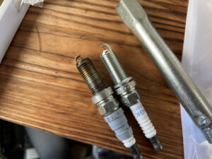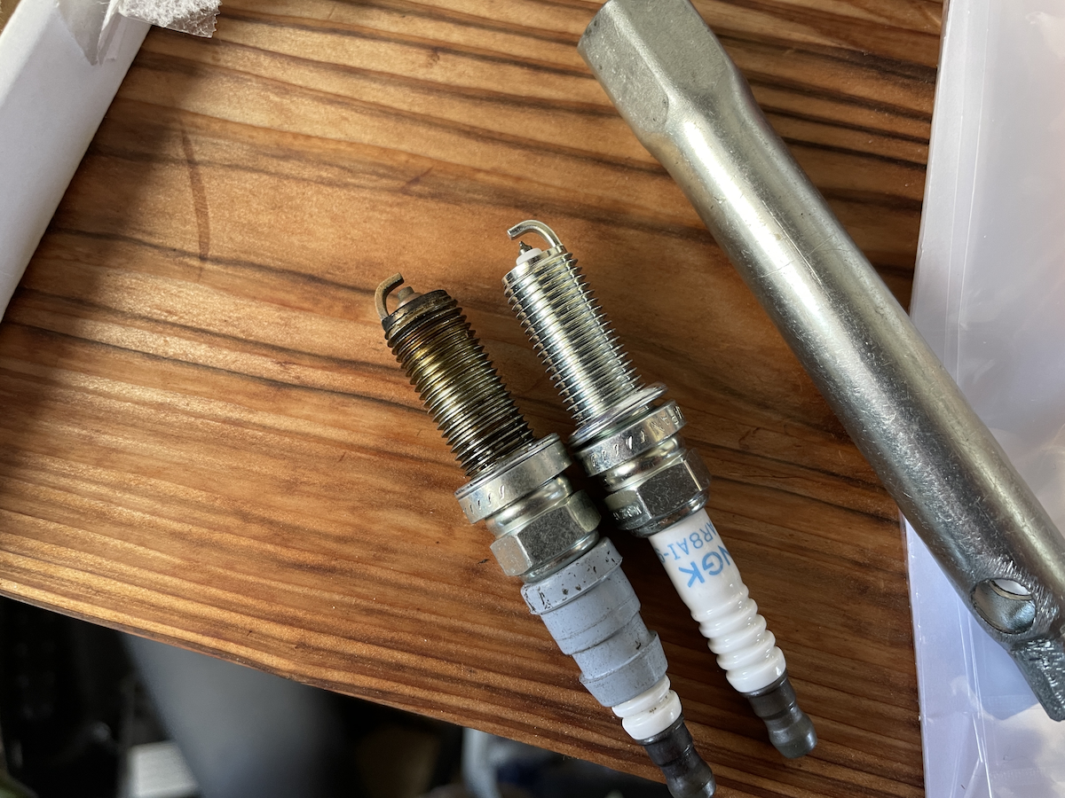 この現象の前にも、何度か、キュルキュル、全く点火せずストン。という現象があった。これはバッテリ電圧低下と思われる。購入して5000kmぐらいになっているので、プラグを疑うが、純正品はBOSCHVR5NEU、webikeで6000円超えてる!、? 国産の代替ないかと探したけどNGKのLKAR8A-9がヒットした。これのイリジウムがLKAR8AI-9を見つけて購入。2500円ぐらいだったかな。