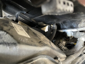 サイドカバーを外してタンクを横にずらすと、タンクキャップが奥に見える。