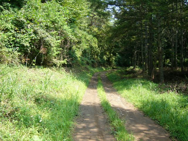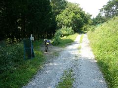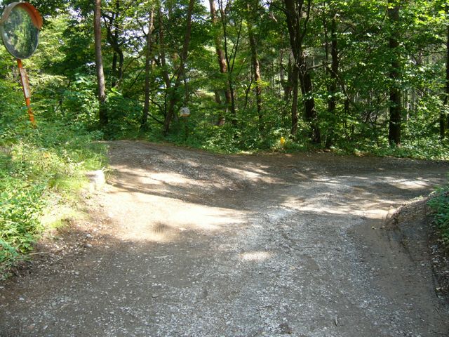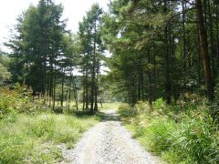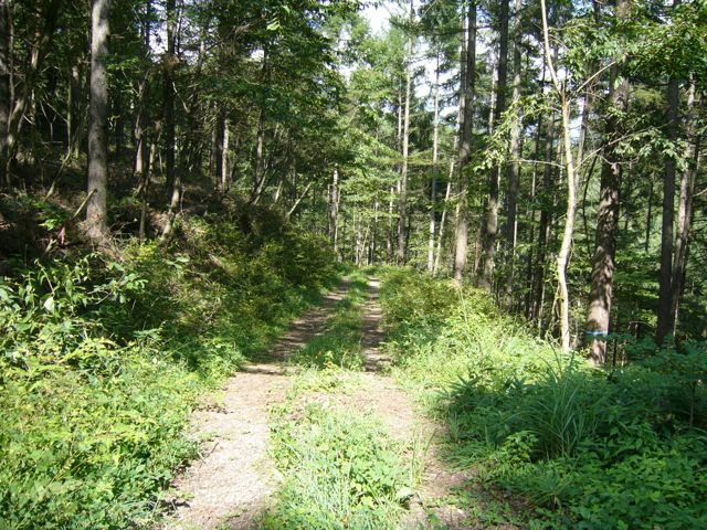 | 諏訪湖の森のGCをすぎた突き当たりの分岐(ポイント[c])である。ここから林道。 | その林道の途中の様子。まぁ、いうたらジモティの作業道である。 |