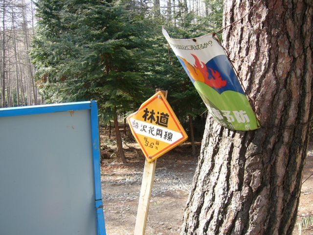 王城林道から日本のへそを経由して辰野へ下りてくると県道にあたる。諏訪方面へ向かうと線路を越えてセブンイレブンの角の交差点を岡谷方面へ向かう。(この交差点を諏訪方面へ直進すると有賀峠になる)。ほたる公園を越えて少し走ると「上平出」信号が有るので、それを諏訪方面(東)へ入る(細い道ですよ)。線路を越えて道なりに進むと中央自動車道のトンネルが見え、その手前で中央道をくぐる事になる。くぐったら林道が始まる。ここがたぶん「花岡山線」である。