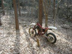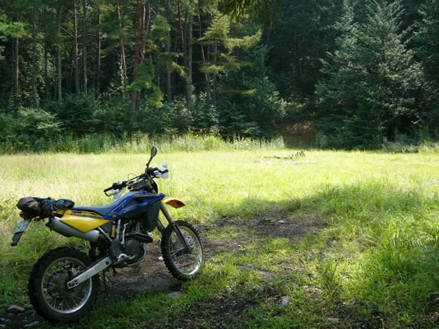 | 高速の高架トンネル「諏訪29」である。これを目印にすればいいのだろうが、私はここに到達するまでがわからない。 | 不明林道(H)を下りてくる途中にある、朽ち果てているYZ。しかし、よく見ると捨てられたのはそんなに前ではないのかもしれません。 |
