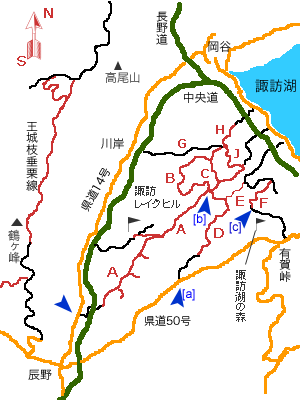 | D:菖蒲が沢林道 | E:不明 | F:不明 |