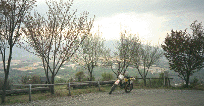 【林道M】 そのうちいくつか左(東)へ下る道への分岐(林道M)を発見できるだろう。だが、そこには「通行止め」「通り抜け不可」などと看板がでていたりする。ここはたぶん私有地なのだろう。乗用車ではたぶん不可だろうがバイクは可能だ。当方で確認している道は2つありどちらも通り抜けられる。かなり険しいがトライアル車が必要という程のことはない。地図上点線で記したが、どこに出るかは、みなさん走ってからのお楽しみだ。入り口も具体的には教えられれない。