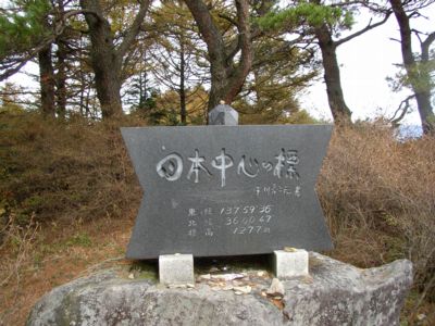 すぐ、三叉路になる。直進は下っていて、右へ入る方にいけば展望台があり、その手前に、ひっそりと「へそ」の石碑がある。