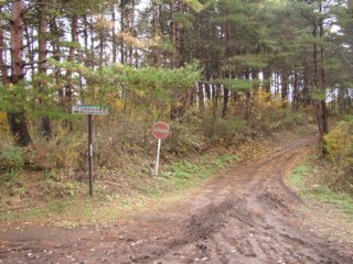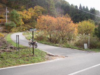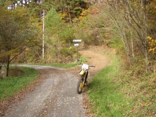こちらは、キャンプ場前、出てきたところ。 林道は1kmほどだが、割と荒れているので、特に雨の日の後は注意されたし。 |