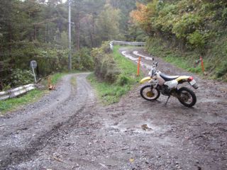 ここもずいぶんライダーが少なくなりましたね。というか、どこに行ってもほとんど他のオフローダーには遭遇しないね。ここの林道は支線は少ないけれど、道は固くしまっていて、あまり自然災害に見舞われない道だ。尾根伝いを走っている事にも理由があるのだろう。少しぬかるんでいたり滑りやすかったりはするが、特に難所もない。