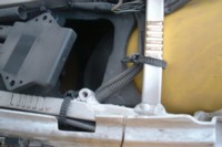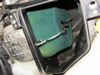 エアークリーナーボックスのシート下部の空気流入口をカッターでカット。大きく広げることにより空気流入量を増やした。かなり低速が増大したように感じられる。気のせいかも・・・