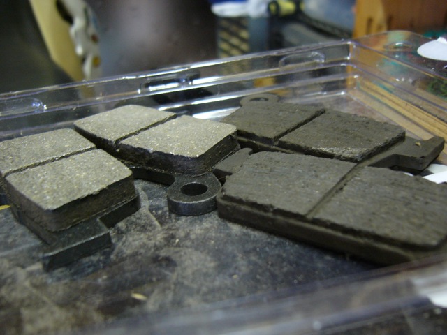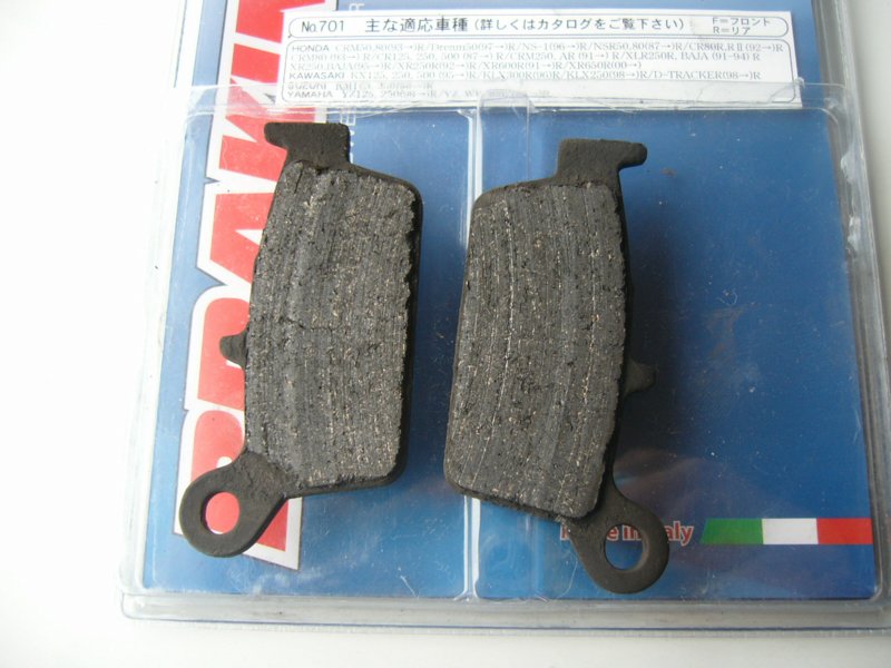 左側はひびが入っているし、すでに割れていますね。交換は、また懲りもせずBraking社のセミメタルです。これ以外ってシンターメタルってのがアルです。効きに不満はないです。ハスクに比べれば子供ダマシですがね・・・