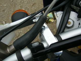 困った事に、Husqvarnaに取り付けるときにはハンドルの固定部にワイヤーの引き回しが干渉するので、若干加工が必要である。