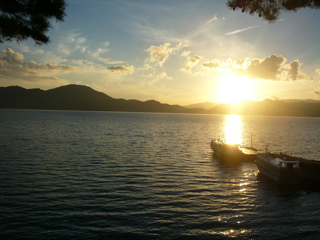 田沢湖に沈む夕日。湖に沈む夕日は好きだ。