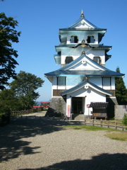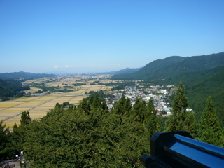 | 稲庭城趾へ向かうスロープカー(内装は金ぴか) | 稲庭城(復元) | 稲庭の町並み |