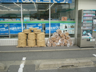 山形県のあるコンビニで。コンビニに行くと、芋煮用の部材がおいてある。この縄を何に使うのか?。芋煮が有名らしい。芋煮るんかな。