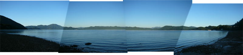 朝の田沢湖、パノラマにしてみた。(横800size)