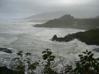 途中の日本海の荒波。 強烈な風と、時折激しい雨に叩き付けられる。追い風で良かったと本当に思う。 |