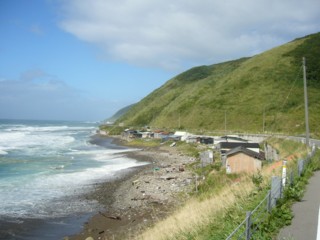 船は思ったほどゆれず(というか全く揺れず)、予想に反して定刻(5:40)で秋田港に着いたです。薄曇りであったが向かう北の方はどんよりしていた。その上、海岸線に出たとたん、強烈な風であらためて「あぁ台風だったんだっけ」と感じましたが、追い風なのでつらくはなかった。台風の速度が遅いため、龍飛に着くまでに台風を追い越すことになり、その後向かい風になると容易に予想できた。