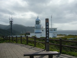 十三湖の前の食堂で、焼き肉定食を注文。焼き肉を焼いているような音が聞こえたんだが、運ばれたときには焼き肉の一部が冷たかった。「?。運ぶ5mぐらいの間に冷めたんやろか。それとも作り置き、チンした?」と考えながら、さっさと食べ、再び走って昼過ぎには龍飛の灯台に立てた。龍飛に向かう途中から晴れ間がでてきて、台風を追い抜いたような感じでした。この十三湖の近くでトライアングルロードというガソリンスタンドがあるんだけど、聞いたことないよね。おばさんマッチくれたよ。スタンドでマッチ? 燃やしてほしいんかいな。
