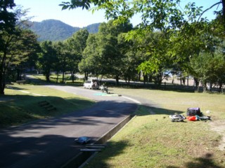 「あれ、キャンプされます?」「はい」「もう受け付け終わっちゃったんですよ。5時までなんですよ。受付しないと泊れないんですよ」「あ、そうですか。じゃぁ、明日朝払うってのでいいでしょ?」「だめなんですよ。泊る場合、宿直を呼ばないといけないんですよ。もう閉めちゃったんですよ」「どうしてもだめ?」「どうしてもだめなんですよ」お兄ちゃんは早く帰りたい一心だ。しかしよく考えてみたら、このお兄ちゃんも市の仕事でここにいて定時に帰ろうとしている訳だ、遊びで旅しているボクなんかがこれ以上引き下がるのもどうかと思い、あきらめた。