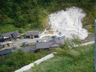 泥湯である。冬場有毒ガスの穴に落ちてなくなられた方のいる。そこらじゅうに、有毒ガス危険。立ち止まると死ぬ との看板が立っていた。 |