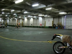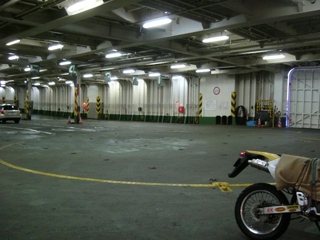 フェリーの中で重大な忘れ物に気づく。テントのポールだ。だが、楽観的にひもかなんかで何とかなるだろうと思った。10月6日の23:30分発のフェリーに乗り込み、予定通り朝5:30に秋田港へ入港した。それにしても、今回ものすごく空いてましたよ。半月前に予約する時は、バイクも残りわずかとなっていて慌てて予約を入れたんですが、乗ってみてびっくり。バイクは僕一人。車も4台ほどで、写真のような状態です。台風の影響でキャンセル多かったんでしょうかね。あるいみ、僕は無謀な人ってことですかね。