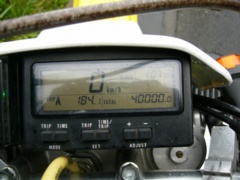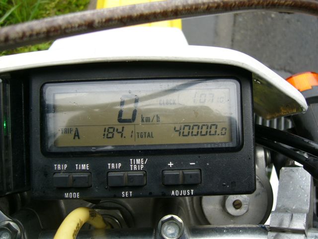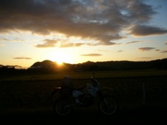| 途中の朝日。 | 新潟の入広瀬のあたりで、ちょうど4万キロになった。でもほんとはもっと走ってんだよなぁ。 |