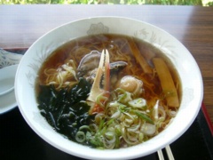 龍飛崎灯台の近くにある簡易食堂で海峡ラーメン。今イチだが、ここしか食べるとこあらへんから。 |