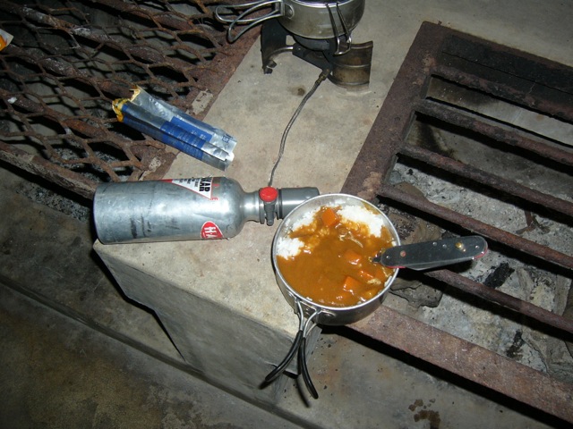 竜飛崎キャンプ場に到着したのは、午後6時ぐらいだった。キャンプ場の管理人がいたので、「キャンプしたいんですけど」と。「えっ?キャンプうー?、今日?、ここで?」と意外そう、昨日は風が凄かったらしく、「今夜はやませ(たぶん浜風の事だろうか)だから良いと思うが、いかんかったら調理場の中使ってくれてもいいし」。当然、キャンプ場は僕ひとりである。建物の影にテント設営し、すでに風はかなり厳しくなっていたので調理場の中で晩飯、外は真っ暗である。