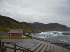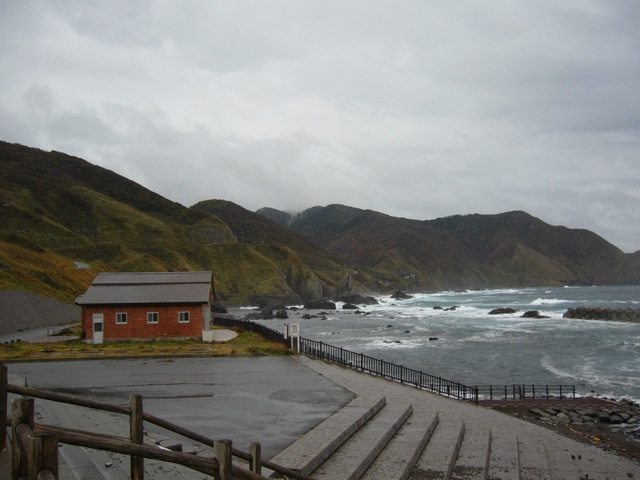 10時頃、ちょっと和らいだか?ってことで、準備し出発。岬の灯台へ向かう。強風の中、土産屋、開いてると良いけど、、、開いてた、一軒だけ、田中商店、いつもの。強風の中、たまに車で来る人が。。。。そう、下の一軒家のホテル「竜飛」には、昨夜観光バスも3台ほど、繁盛している模様。変わったのね?。前は誰も泊まってる風でなかったのに、テレビの影響?。。おばはん、やっぱり、半分しか聞き取れん。「あれ?、あんまり通じてないみたいだね」はぁ、適当に相づちうっとたらいかんか。