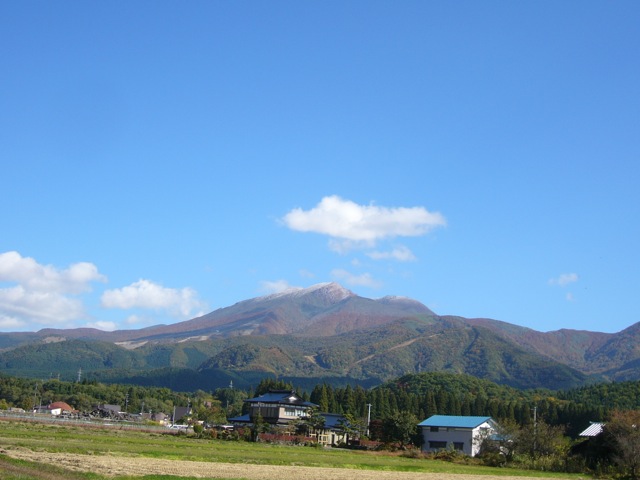 乳頭山がうっすらと白い。ゆっくりしたい所だがガス補給し、再び南下。46号でとりあえず角館、通過。その後、県道をつないでつないで、本荘まで出てから7号に入った。秋田の県道で田舎道、のどかで良いなぁ、全く信号ないし。楽しかった。