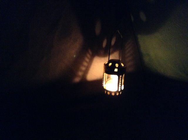 今回持って来たロウソクは風防と薄いロウのセットなのですが、うーん。これは使えんな。これは、2cmぐらいの高さのロウがアルミホイルのような器に入っていて燃えるもので、ちょっと知らなかったのだが、火をつけると、しばらくすると中のロウが全部溶けて液体になり液体の中で芯線が燃えるのだ。よって、揺らすと溶けてるロウがピシャピシャとアチー。まったく。火傷はしないが、ロウをこぼしちゃうと当然燃焼時間が減る。