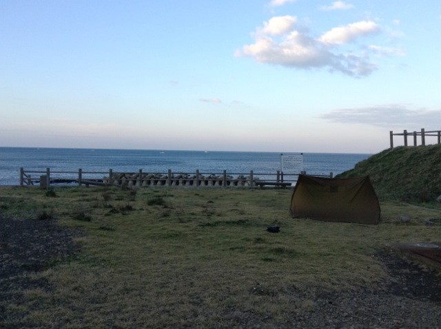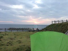 その日の二時ごろには龍飛に到着、3時には設営しました、もちろん竜飛崎キャンプ場。とうぜん、今日も一人です。三厩で食材、wimax等やったりしてたらもどったら、ちょっと夕陽に間に合いませんでした。 マグライトを忘れたせいで、真っ暗で困りましたが、おかげで、よる一時的に晴れた時の星空が綺麗でよかったです。北は灯台の光で眩しいけど、上空は天の川もくっきり。寒かったけど。 といっても、いつものように寒くありません、10℃ぐらいですもん。