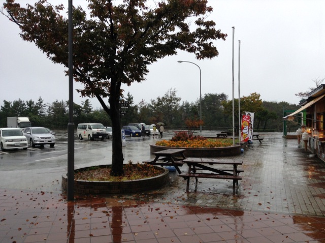| 田沢湖キャンプ場の朝 | 道の駅、「なかがわ」米どころ。とりあえず会社と子供たちにエサを。 | 秋田から山形県に入ってすぐの道の駅「象潟」きさがた、と読む。ここで雨が降って来た。見えるのは鳥海山。 |