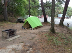 2時ごろから雨が降り出し、遊佐町の西浜キャンプ場で。ここのキャンプ場も毎度泊まる場所。いつも一人でもそれほど淋しさを感じない場所。風防の松林が有るせいで感じにくいのだが港のすぐそばなので、潮風がする。風邪の影響は受けにくい。寝るまでに台風の風向きに合わせてテントを3回ぐらい張り直したかな。モンベルのテントは3角形で、横からの風雨には強いのだが、前後の風雨はかなり弱い、というか遮る物が無い。そろそろ、全方向へフライが張れるテントに変えたいな、、なんて思ったりもしてる。