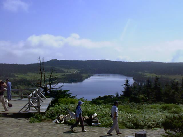 友人がいいというアスピーテライン(盾状火山)をとおった。八幡平の頂上では1時間程遊歩を楽しんだ。岩手山どころか周りの山は全て曇っていて見えない。おまけに寒い。 |