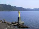 仕方なく辰子像の近くの「潟前山森林公園キャンプ場」に向かう。まだ夕方なのに管理棟はあるが人の気配なし。公園のようなところのベンチのそばにテントを張る。ただであった。高台にあり、トイレもあるし電話もある。お勧めである。田沢湖がきれいだ。