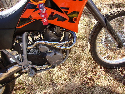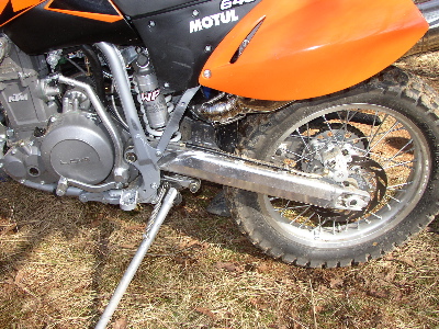 KTMを身近でみるのはこれで3回目かな。最初は、HER(当麻EDの前身)でトシニシヤマ氏と話したとき。2回目は初めて長野の林道を走っているとき抜いていったおじさん(現アズミノトライアングル店長)。どちらも、白のKTM。KTMといえば白じゃないですか、だんな。白のボディーに緑と黄色のステッカー。でも、蛍光オレンジもなかなか。でもでも、僕はハスクの方が好きかな。