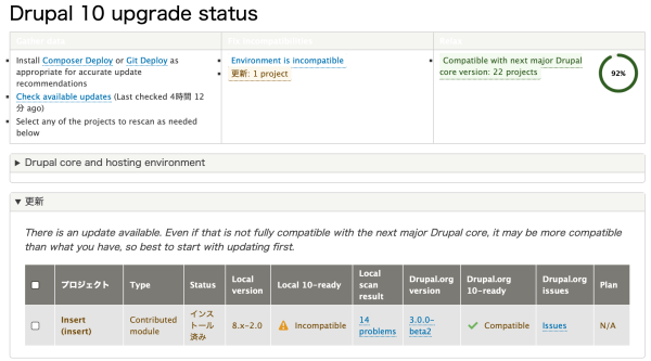 insertモジュールはupdateはあるが、^10.0になってしまうので、この時点9.5であるため入れられない。これはつまり一旦削除してupgrade後に再度導入するということか?