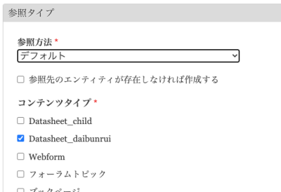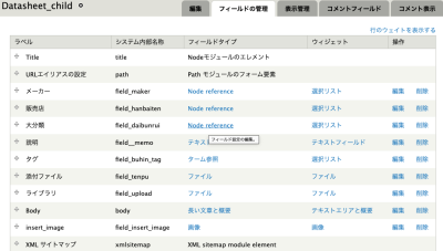 - Datasheet_childは、1部品1コンテンツになり、node_referenceで親を参照する
