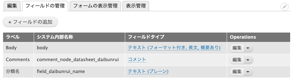 代理店やメーカなどの参照先もあるが、ここで一旦無視するとして、参照するためのフィールドを作る。viewsは移行する手段があるようですが、コンテンツのフィールドが移行されてなきゃだめなんで、結局全てのコンテンツを修正する必要があるというわけですかね?