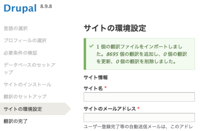 - データベースと、ユーザ名、パスを記録(今のD7のsetting.phpに書いてある)