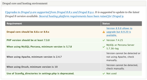 update statusモジュールを入れる https://www.drupal.org/project/upgrade_status/