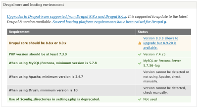 update statusモジュールを入れる  https://www.drupal.org/project/upgrade_status/