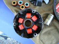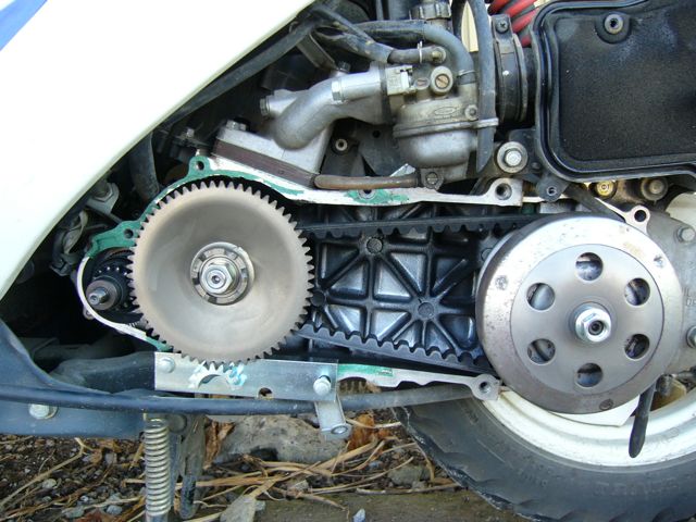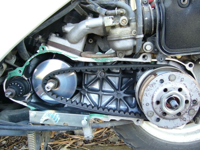 もともと、改造してあった。という事が一番の要因だと思います。開けてみるまで分からなかったのですが、ベルト、ウェイトローラ、プーリーのすべてDaytona製に変えてあり純正では有りませんでした。そういえば、もらうとき、「ちょっといじってあるからスピード出るよ」って言ってたわ。このことだったのね。出だしが悪いのは高速に振ってあるせいだったのかも知れませんな。最初に聞けば良かった。