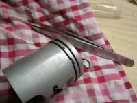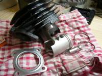 ノーマル品で、5000円ぐらいだそうですが、ボアアップ品で1万弱ですね。ボアアップが魅力ですが、キャブセッティングが面倒ですね。こいつに労力をかけるには時間がもったいないなぁ、ここは一つノーマルで。。。というより、阿部さんには申し訳ないが捨てる?と迷いつつ、夜に、5000円のシリンダセット/ノーマル品をポチッと。あーもったいない事したと思っている。