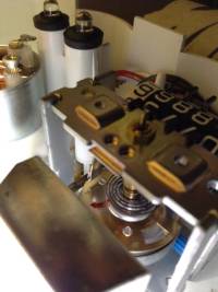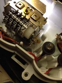よくわかんないけど、ワイヤの固定先に磁石が付いていて、そいつの回転で針が振れるらしい。上に付いている渦バネは針戻す為だけのよう。 それで、どうやって、電気に変えるの?ってことなのだが、機械式を電気に換えるアダプタがあるようだ、これを使えばパルスが取り出せそうで、それならマイコンでなんとでもなりそう?。。