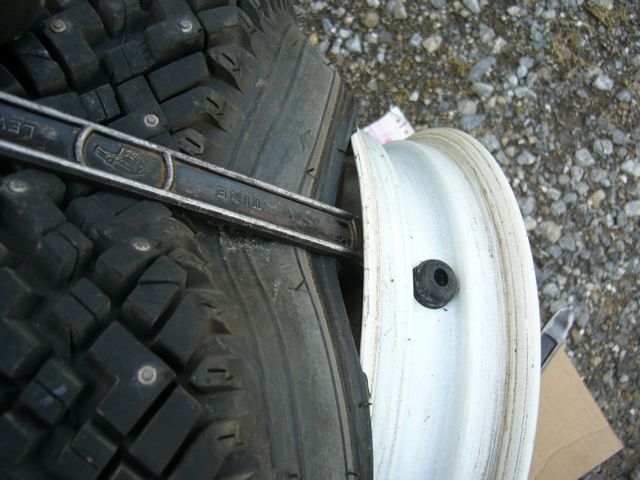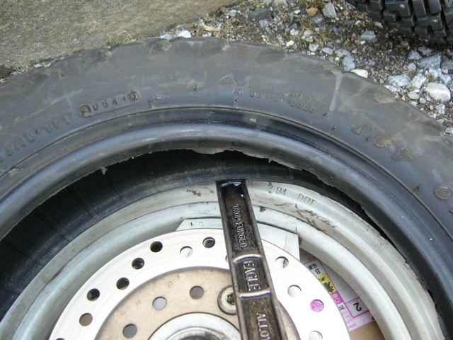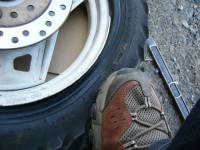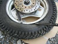 ホイールが外れたら、タイヤのビード(タイヤの耳。ホイールと接触している部分)をリム(スクータの場合はホイールか)から落とさなければなりません。難関はここだけです。