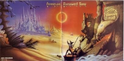 LPカバーが見開きになっていて、表が右、裏が左の構成。スキャンしたものは89年にCD復刻されたものだ。LP初版は83年。このカバーのデザイナーはMagnum、PrayingMantisなども手がけていて、結構すき。
